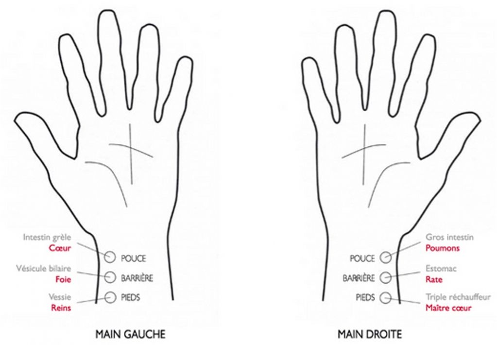 La prise de pouls permet de donner des indications sur la zone du corps en déséquilibre, et de l’état de l’énergie, du sang et des liquides organiques.